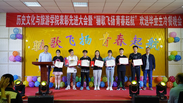 6月15日晚,历史文化与旅游学院在旅游实验室举行了表彰先进大会暨“骊歌飞扬 青春起航”欢送2021届毕业生晚会。学院领导、班主任、辅导员、学生代表等共200余人参加了晚会。