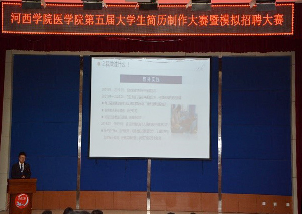 为了普及大学生简历制作技巧,引导学生科学合理地制作简历及相关应聘材料,提高学生的就业技能与实践能力,近日,医学院举行了大学生简历大赛暨模拟招聘大赛,学生工作负责人、专业课教师代表、辅导员、300余名学生代表观看了比赛。