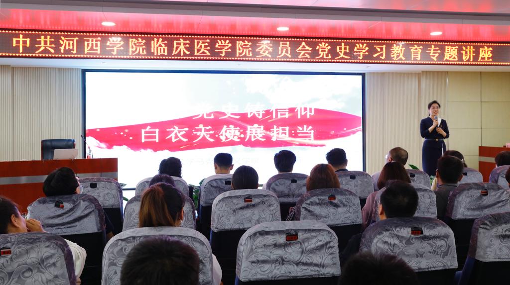 近日,临床医学院党委邀请省委宣讲团成员、兰州大学马克思主义学院讲师李晓莉作了题为“百年党史铸信仰,白衣天使展担当”为主题的党史学习教育宣讲报告。学院师生100多人聆听了报告。