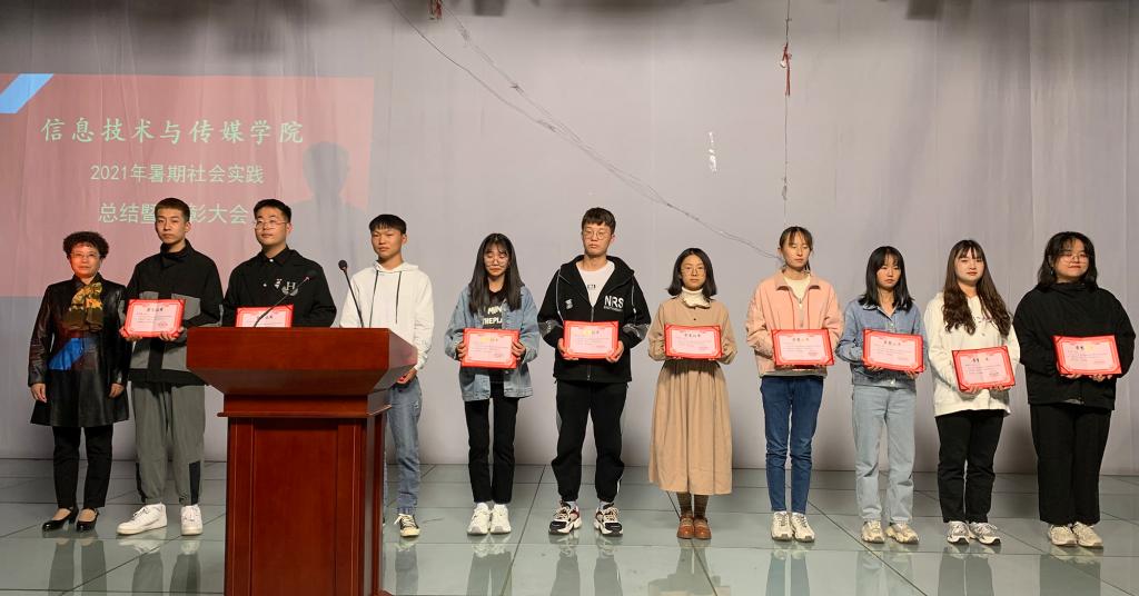 10月4日,信息技术与传媒学院召开2021年大学生暑假社会实践总结表彰大会。会议对信息技术与传媒学院2021年大学生暑期社会实践工作进行了全面的梳理和总结,并对十名院级优秀实践队员进行了表彰奖励;五名同学分别代表实践团队做了交流发言。