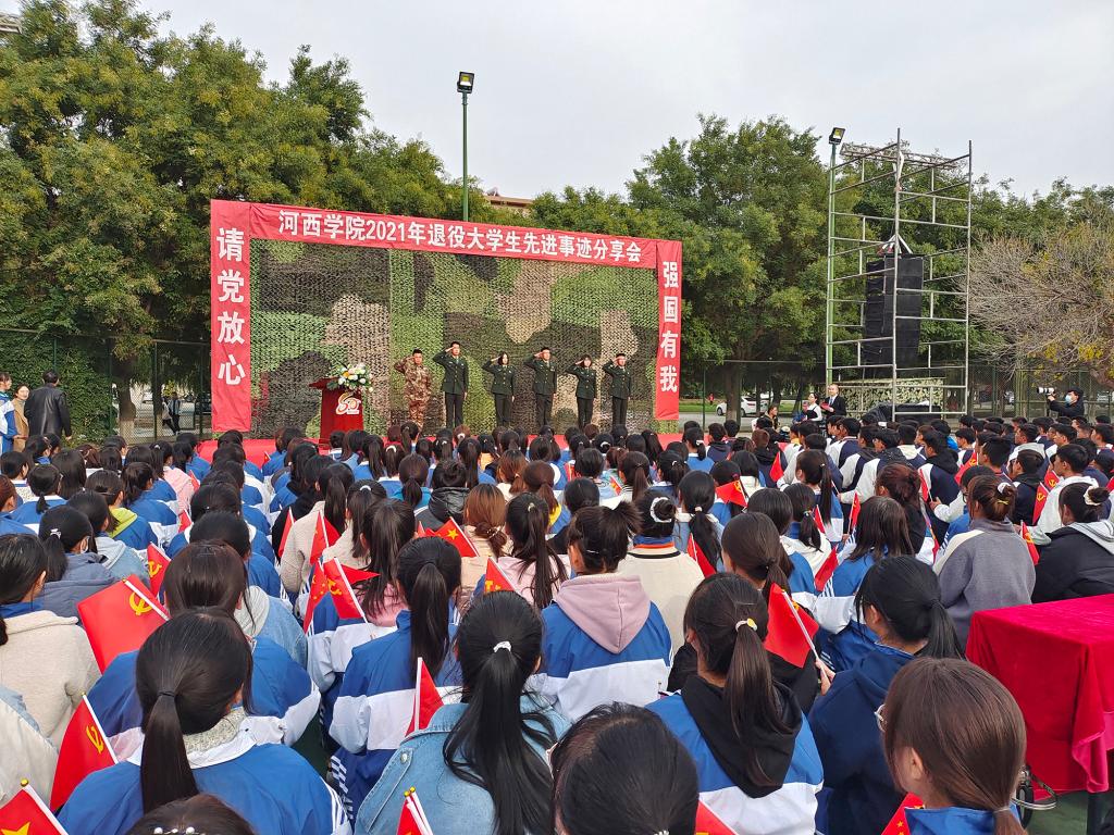 10月14日至15日,学校在校本部、医学校区运动场分别举行了“退伍永不褪色 传承红色基因”退役大学生先进事迹分享会。张掖军分区、第31期承训教官、人民武装部,2021级军训新生共计3400余人参加了报告会。