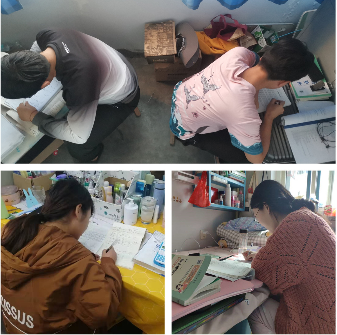 疫情发生以来,学院大四学生学习阵地从教室转为宿舍,带来了不便和困难,但学生们积极克服,在宿舍、在楼道坚持学习积极备考,形成良好的学习氛围。