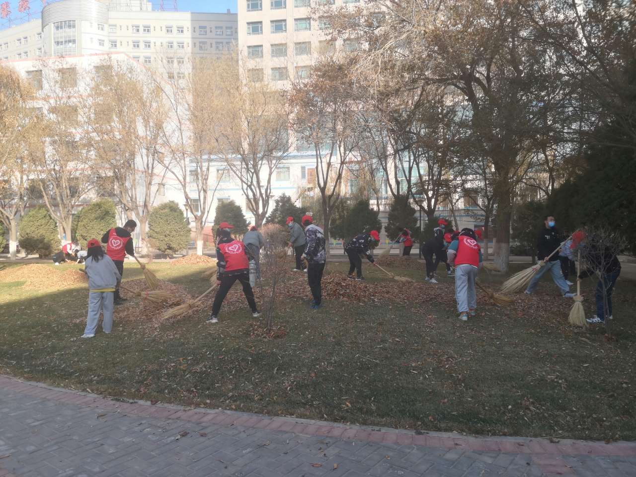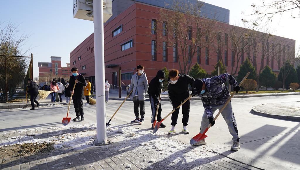 上午9时,校本部和医学校区同时开展了环境清扫,20个学院的1300名志愿者按照学校疫情防控办要求,佩戴口罩,间隔一米距离展开工作。活动中,同学们在天气温度较低的情况下,工作热火朝天、满怀热情,既分工有序又积极配合,同学们对家属区、校园道路、绿化带杂草中的枯木、积雪等进行铲除清扫;对公寓楼下乱放的电动车、僵尸车重新进行摆放清扫;对学生餐厅、学生公寓周围的环境进行重点清扫和清污消毒。