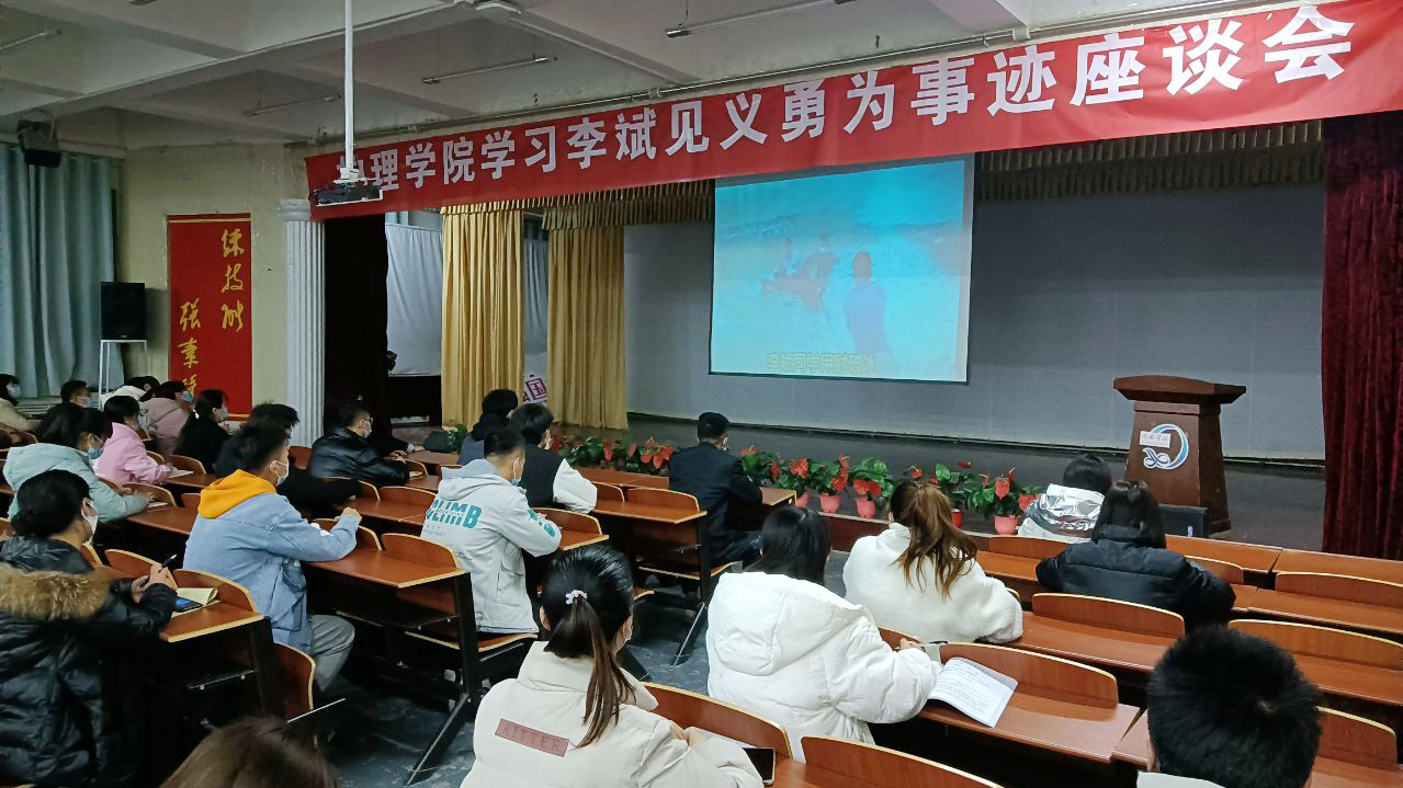 会议现场观看了三位同学英雄事迹视频,护理学院护理学213班李斌同学现场向同学们讲述了惊心动魄的救援过程和自己的心路历程;李斌同学同班、同宿舍以及学院其他班级五名同学畅谈了自己的学习感言,线上参会同学积极在群内发表感言。同学们纷纷表示,李斌等三位同学奋不顾身、英勇救人的感人事迹,既是我们学习的榜样,更是新时代大学生的骄傲,是社会主义核心价值观在大学生中的有力践行,是雷锋精神在当代社会的生动体现。