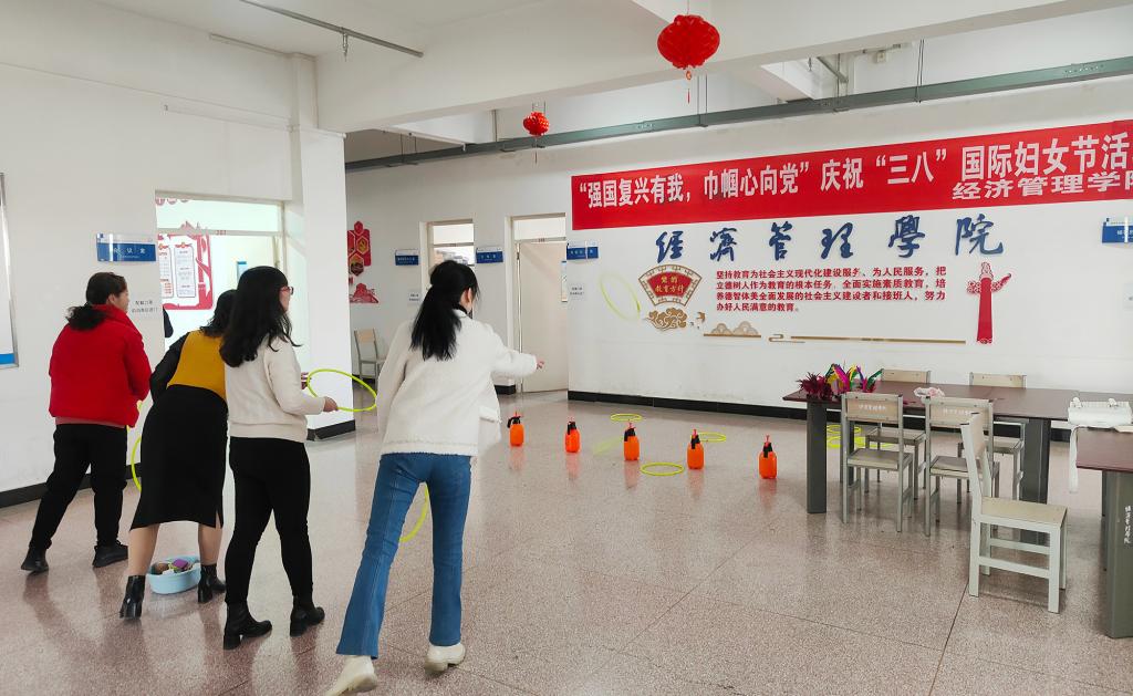 为纪念第112个“国际劳动妇女节”,引领全院妇女巾帼心向党,以实际行动迎接党的二十大胜利召开。经济管理学院工会积极响应校工会以“强国复兴有我”为主题的庆祝活动, 3月2日,经济管理学院工会举行庆祝“三八”国际妇女节趣味体育竞赛活动。