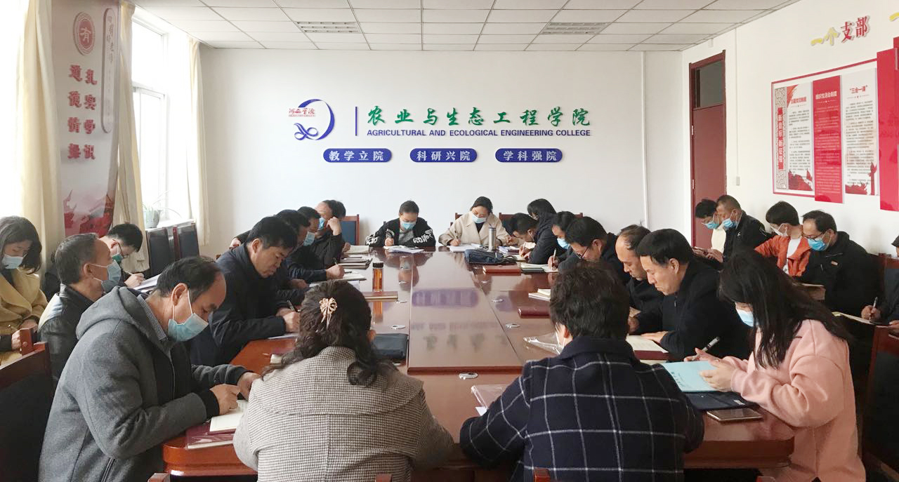 3月8日下午,农业与生态工程学院召开教职工政治理论学习暨疫情防控工作会议,会议由学院负责人主持,全体教职工参加。