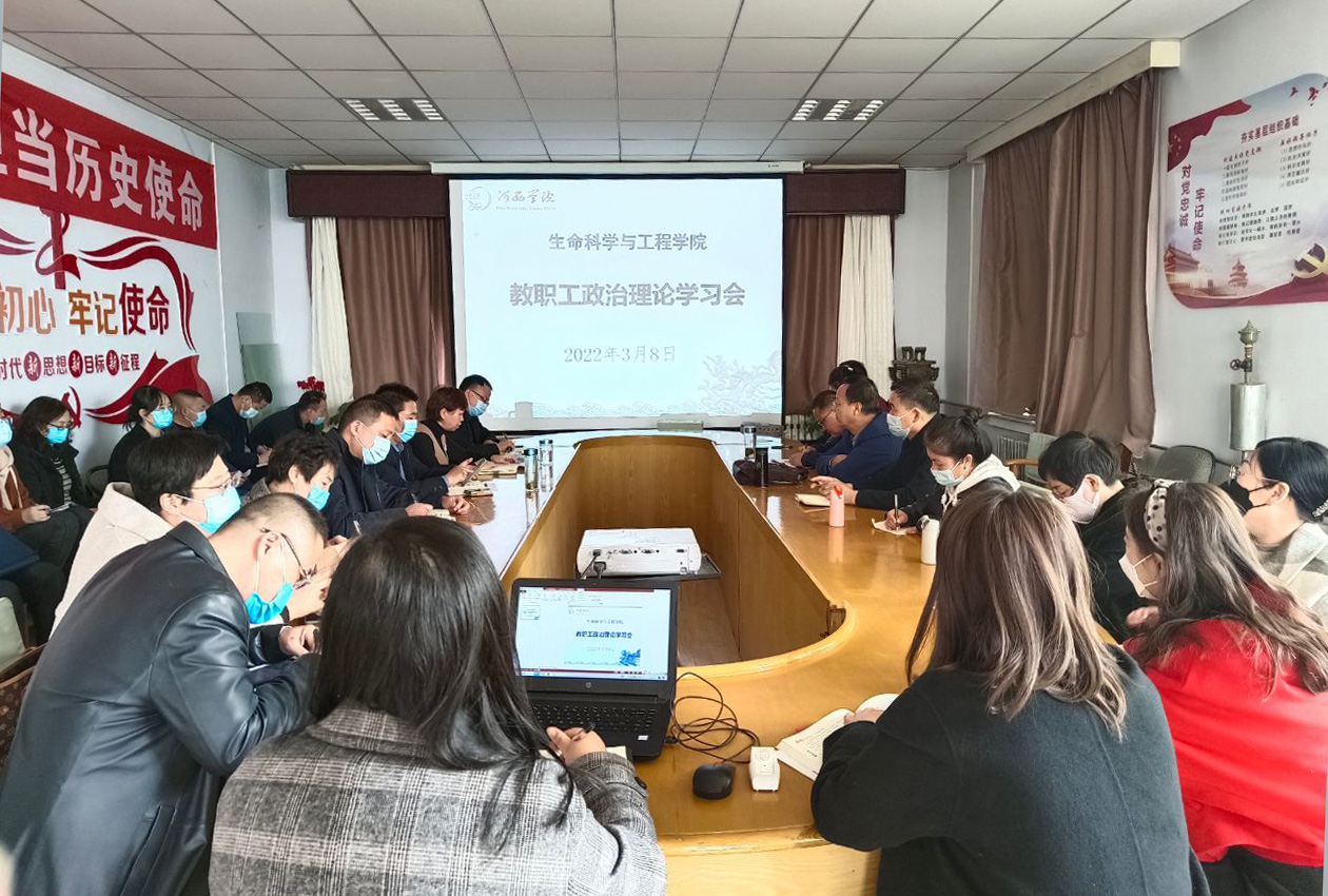 3月8日下午,9001cc金沙以诚为本召开了教职工政治理论学习暨疫情防控工作会议,全体教职工参加。