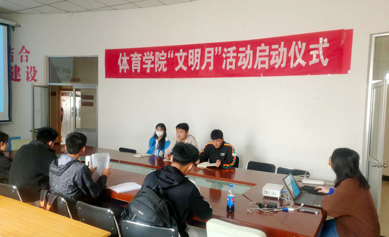 3月11日下午,体育学院举办第十四届文明月活动启动仪式,学院辅导员、2020级、2021级学生代表参加。