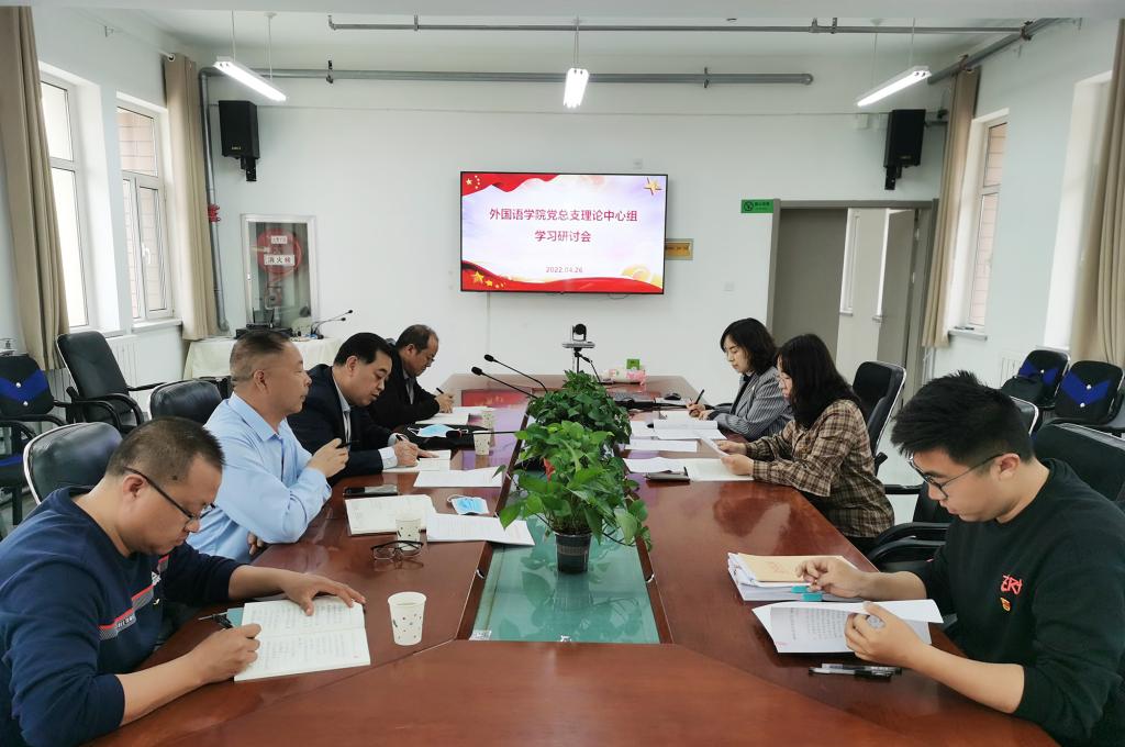 4月26日下午,外国语学院召开党总支理论中心组学习会,党总支理论中心组成员参加,学院联系领导校党委常委、附属人民医院党委书记王德旁听并指导会议。