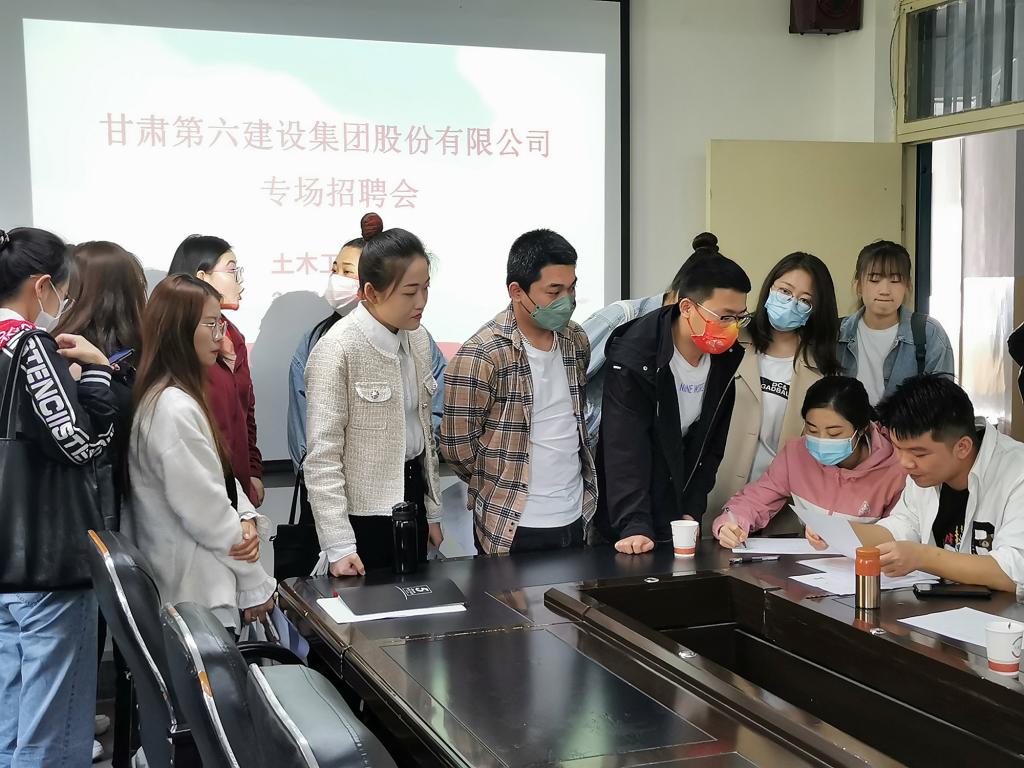 4月28日上午,甘肃第六建设集团股份有限公司专场招聘会在土木工程学院举行。土木工程学院院领导及未就业学生参加了此次招聘会。