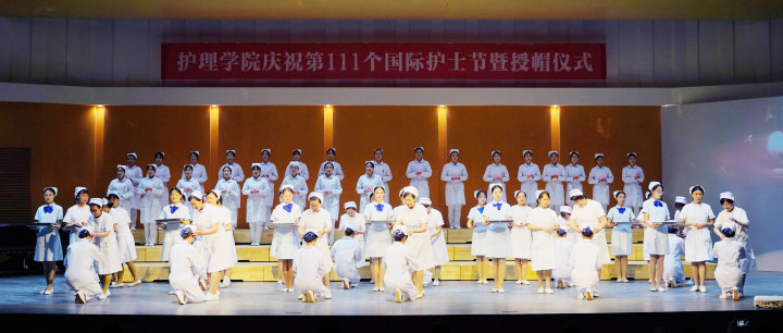 活动以“感知护理”“走近护理”“奉献护理”三个篇章展开。情景史诗表演让与会师生重温现代护理的发展历程;护理礼仪表演和情景技能展演,展示了护理学子深厚的人文情怀与扎实的专业技能;老中青三代教师与护理学子以《我是一名护士》为题的配乐诗朗诵、2022届毕业生的云端寄语感人至深;全体教师为即将奔赴实习岗位的护理学子授帽并集体宣誓;对学年涌现的教师标兵及优秀学生进行了表彰奖励,活动在歌舞《中国护士之歌》中落下帷幕。