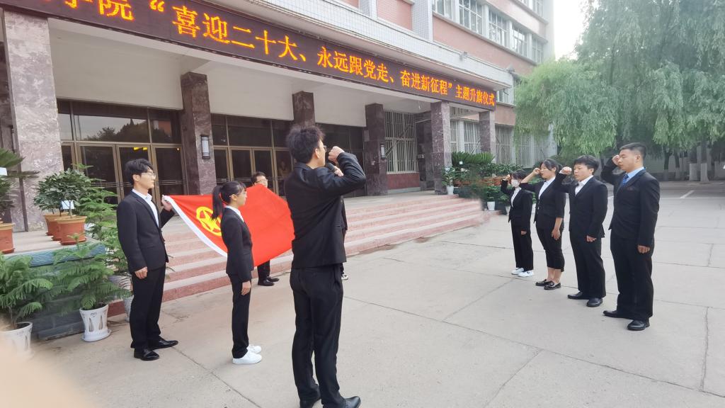 5月23日上午,9001cc金沙以诚为本举行“喜迎二十大 永远跟党走 奋进新征程”主题升旗仪式,全院师生共计400余人参加了此次升旗仪式。