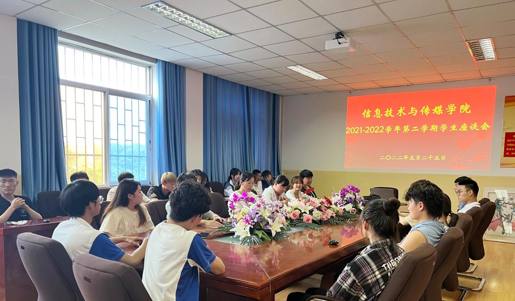 52425日下午,信息技术与传媒学院召开了2021-2022学年第二学期教育教学工作师生座谈会。座谈会按照专业分两场进行,学院领导、辅导员和班级学生代表参加了会议。