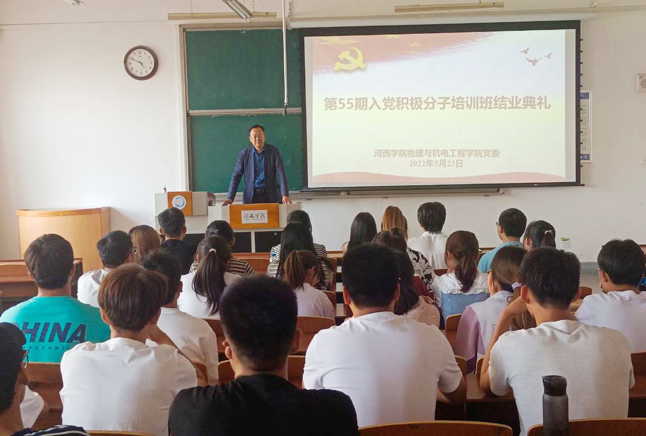 近日,物理与机电工程学院第五十五期入党积极分子培训班结业。学院党委书记、培训班班主任、学生支部书记、全体辅导员老师和全体培训学员共100余人参加了结业仪式。
