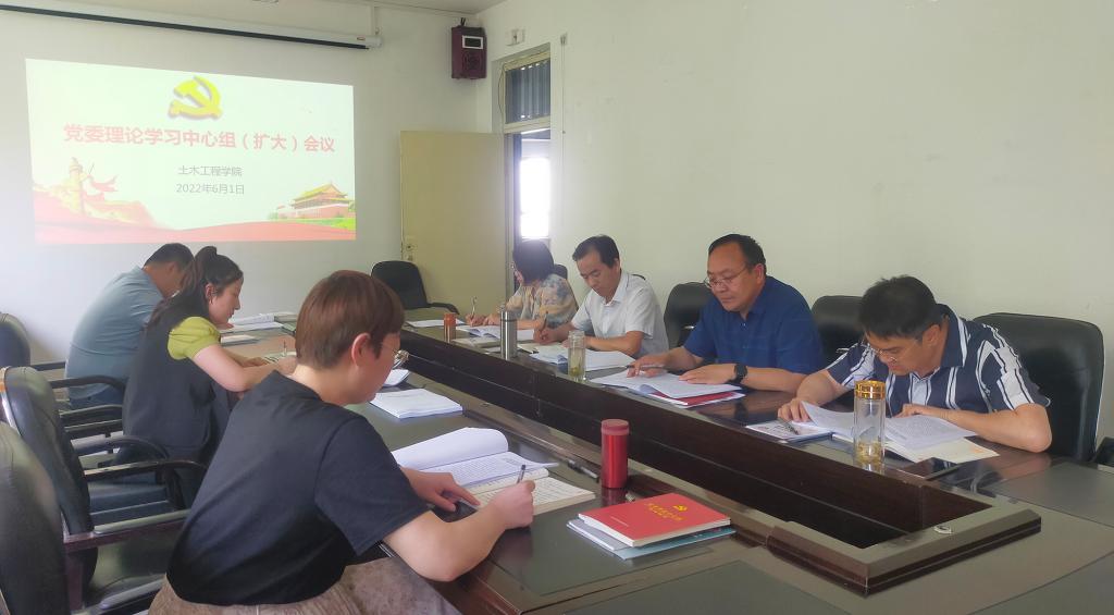 6月1日下午,土木工程学院召开党委理论学习中心组(扩大)学习会,土木工程学院党委理论学习中心组成员、各支部书记参加了会议。