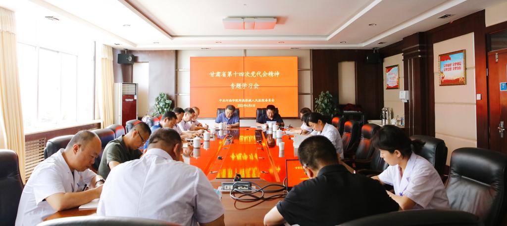 会议指出,学习贯彻党代会精神,首先要学懂弄通,关键是担当作为,根本在凝心聚力。要以习近平新时代中国特色社会主义思想为指导,全面落实习近平总书记关于卫生健康工作的重要论述和对甘肃的重要讲话指示精神,充分认识省第十四次党代会的重大意义,深刻理解,准确把握会议精神,把广大党员干部和职工的思想和行动统一到党代会确定的目标任务上来,通过形式多样的宣传学习辅导研讨,学思践悟,学以致用,把省十四次党代会精神学习好、宣传好、领会好、贯彻好、落实好。下一步将按照省委和学校党委的安排部署,结合医院中心工作,扎实开展学习宣讲活动,努力营造浓厚学习氛围,以实际行动落实党代会精神,以优异成绩迎接党的二十大胜利召开。