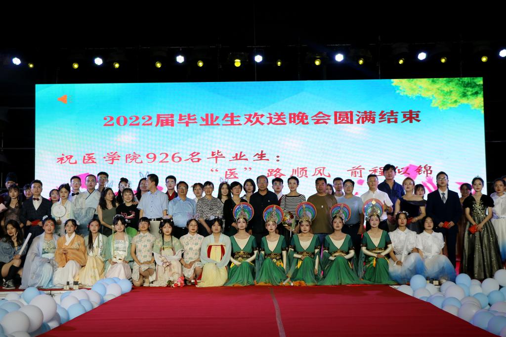 6月19日晚,医学院举办2022届毕业生“礼赞青春 逐梦启航”毕业晚会,学院领导、教师代表及全体在校学生参加晚会。