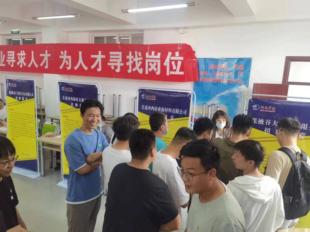此次专场招聘活动吸引了来自张掖经开区的谷大种业、河西硅业、祁连牧歌、新乐食坊等22户企业,提供岗位165个,岗位需求528人,招聘岗位覆盖面广,专业符合度高、薪资待遇丰厚,我校800多名学生参与招聘活动。毕业生根据自身特点,积极主动与招聘企业工作人员交流,介绍自己的专业优势和求职意愿,形成了浓厚的现场求职气氛。