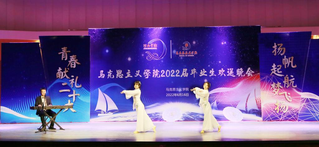 6月16日晚,马克思主义学院举办“青春献礼二十大 扬帆起航梦飞扬”2022届毕业生欢送晚会,学校党委书记狄生奎出席晚会,学校办公室、宣传部、科技处、学工部、团委等部门负责人和马克思主义学院全体师生欢聚一堂,共同欢送2022届毕业生。