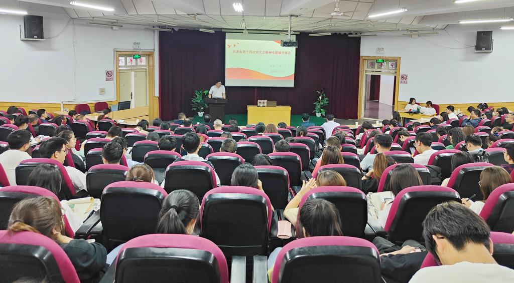 报告会上,赵柱从甘肃省第十四次党代会召开的基本情况、充分认识学习宣传贯彻省第十四次党代会的重大意义、全面准确把握省第十四次党代会的精神实质、精心组织迅速兴起学习宣传贯彻省第十四次党代会精神的热潮等四个方面对甘肃省第十四次党代会精神作了全面深入的解读,并结合国情、省情、校情和具体实例对学校面临改革、寻求突破、提升发展的关键时期,抓好用好党代会提出的新思路新部署新要求将是一次新的发展机遇进行了阐释,要求学院、师生应在幸福美好新甘肃、富民兴陇新局面的建设中找准自身定位、谋划发展、踔厉奋发、有所作为。