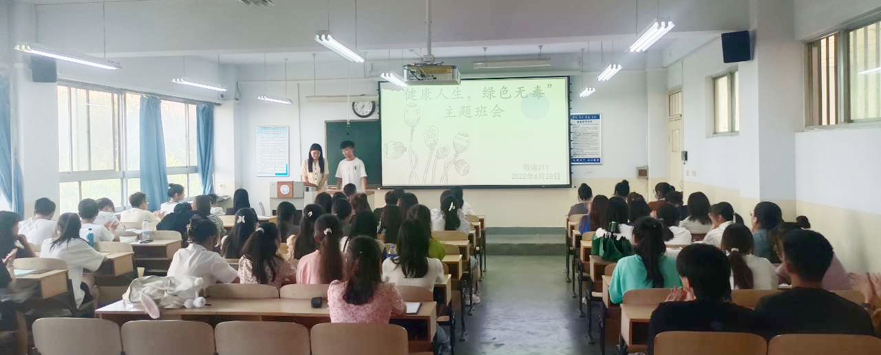 为了进一步加强全院学生的毒品预防教育,不断提升学生的禁毒意识和步入社会后的拒毒防毒能力,根据省教育厅《关于做好 2022 年全省教育系统“全民禁毒宣传月”宣传教育工作的通知》和学校禁毒宣传工作要求,6月28日,外国语学院俄语211班组织开展“健康人生 绿色无毒”禁毒教育主题班会分享会。班主任代表、其他班级班干部、学生代表共计80余人参会。