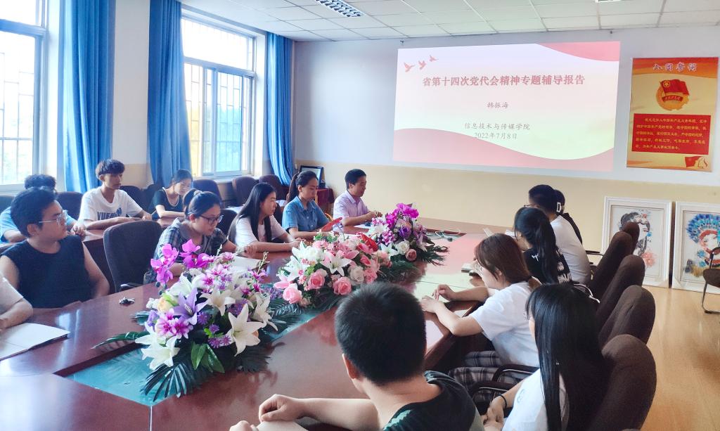 为切实学习贯彻落实好省第十四次党代会精神,7月8日下午,信息技术与传媒学院组织学生党员、入党积极分子开展了甘肃省第十四次党代会精神专题宣讲,学院负责人作了专题辅导报告。