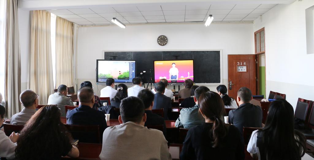 全体与会师生,线上线下观看了校园风光及重大活动电子相册、学校形象宣传片《扎根》,认真聆听了校长寄语。师生共同感悟学校悠久的办学历史,感受优美的校园环境。