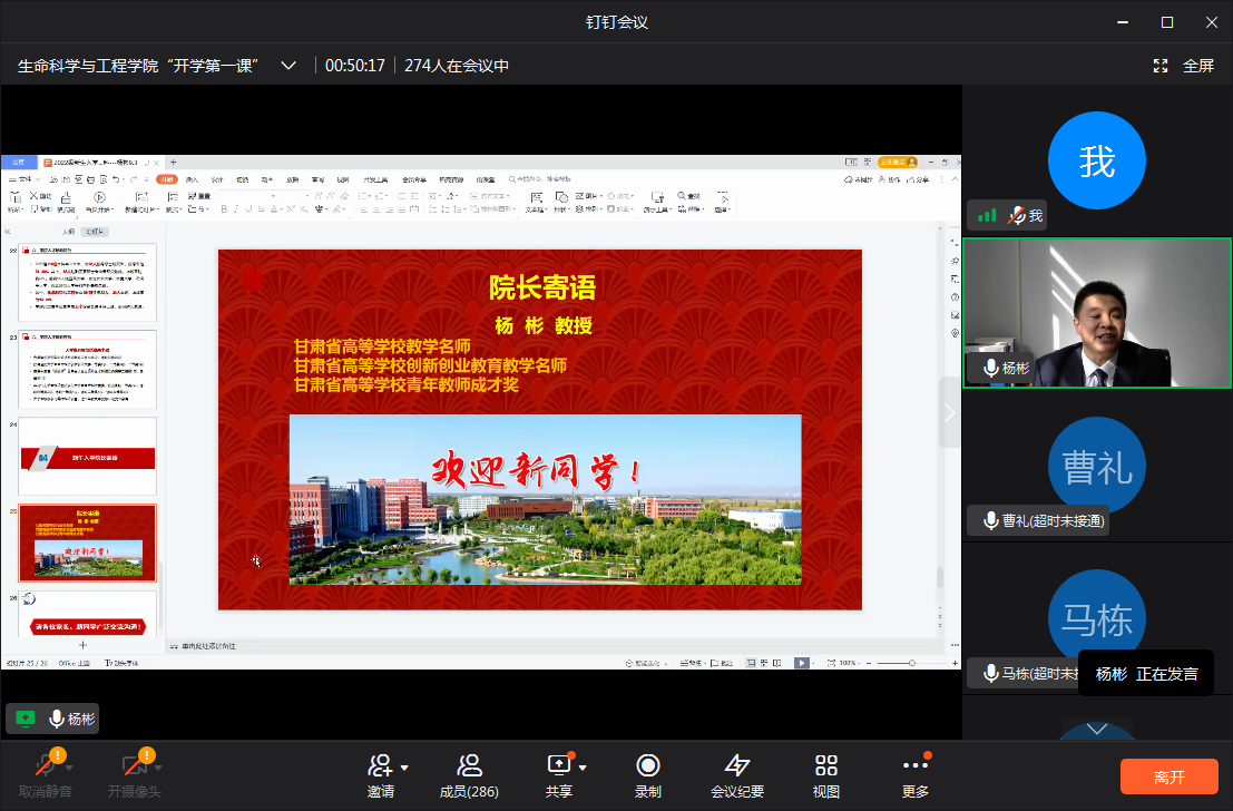 9月4日,9001cc金沙以诚为本全面组织学院负责人、新生班班主任、辅导员与271名新生“云”端相聚,开展新生入学教育第一课。