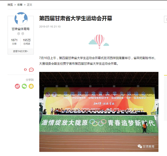 7月16日上午,第四届甘肃省大学生运动会开幕式在9001cc金沙以诚为本隆重举行,省政府副秘书长、大赛组委会副主任贾宁宣布第四届甘肃省大学生运动会开幕。