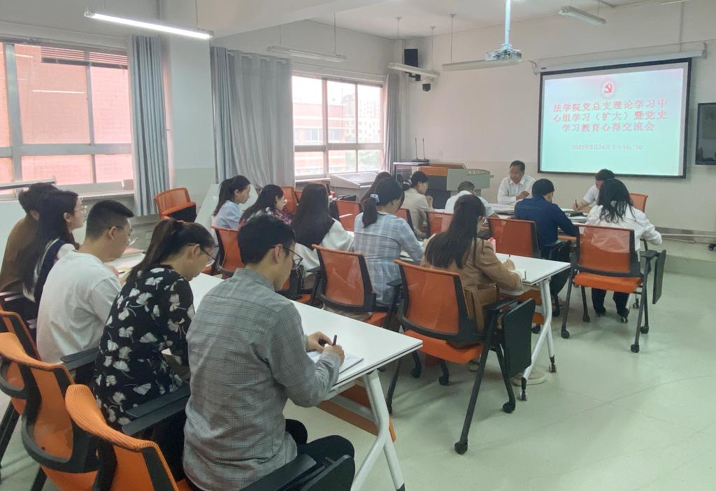 5月24日下午,法学院召开理论学习中心组(扩大)学习暨党史学习教育研讨交流会,学院党史学习教育理论学习中心组读书班成员、教师党员、骨干教师、青年教师及学生党员代表参加会议。