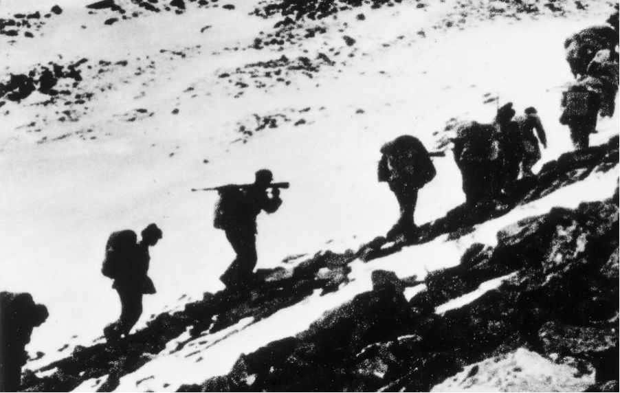 从1933年秋天起,蒋介石集中50万兵力,对以江西瑞金为红色首都的中央苏区发起第五次“围剿”。在第五次反“围剿”中,由于“左”倾教条主义错误在中共中央占统治地位,加之红军指挥大权交给了共产国际派来的德国人李德,第五次反“围剿”失败。1934年4月10日,国民党军队集中了十个师的兵力会攻中央苏区北大门广昌。经过18天血战,广昌失守。九月上旬,各路敌军加紧对中央根据地中心地区发动进攻,中央红军已无在原地扭转战局的可能。十月中旬,经共产国际同意,中共中央,中革军委率中央红军主力8.6万余人,踏上战略转移的漫漫征程,开始了长征。