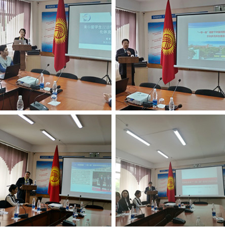 我校蔺海鲲、董家丽、杜军林、哈建军四位教授分别以《“一带一路”视野下中国河西走廊与吉尔吉斯斯坦文化多元共生理念比较研究》《来华留学生汉语学习过程中的“文化休克”现象》《“一带一路”教育共同体构建视阈下中吉两国人才交流模式的新探索》《民间艺术对“一带一路”优秀文化的传播》为主题作了学术报告,取得了良好的评价和效果。